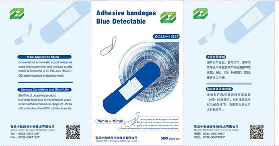 BRC(BRC-ATP)藍(lán)色創(chuàng)可貼。(按照BRC/IFS/AIB及采購(gòu)商二方審核的要求,購(gòu)買(mǎi)的藍(lán)色金屬可探測(cè)的創(chuàng)可貼)定向供給歐盟出口轉(zhuǎn)內(nèi)銷(xiāo)產(chǎn)品 Directional supply European exports turns sale in domestic market products青島綠谷公司方便于國(guó)內(nèi)出口企業(yè)更嚴(yán)格監(jiān)管和產(chǎn)品質(zhì)量控制或利于BRC、AIB、IFS、HACCP、QS認(rèn)證評(píng)審工作等Convenience in domestic export enterprise more strict supervision and product quality control or favors the BRC, IFS, AIB, HACCP, QS authentication evaluation work. Main application fields(領(lǐng)域):食品出口加工企業(yè)、醫(yī)療衛(wèi)生特殊行業(yè)等。青島綠谷公司提示,本產(chǎn)品非藥物創(chuàng)可貼